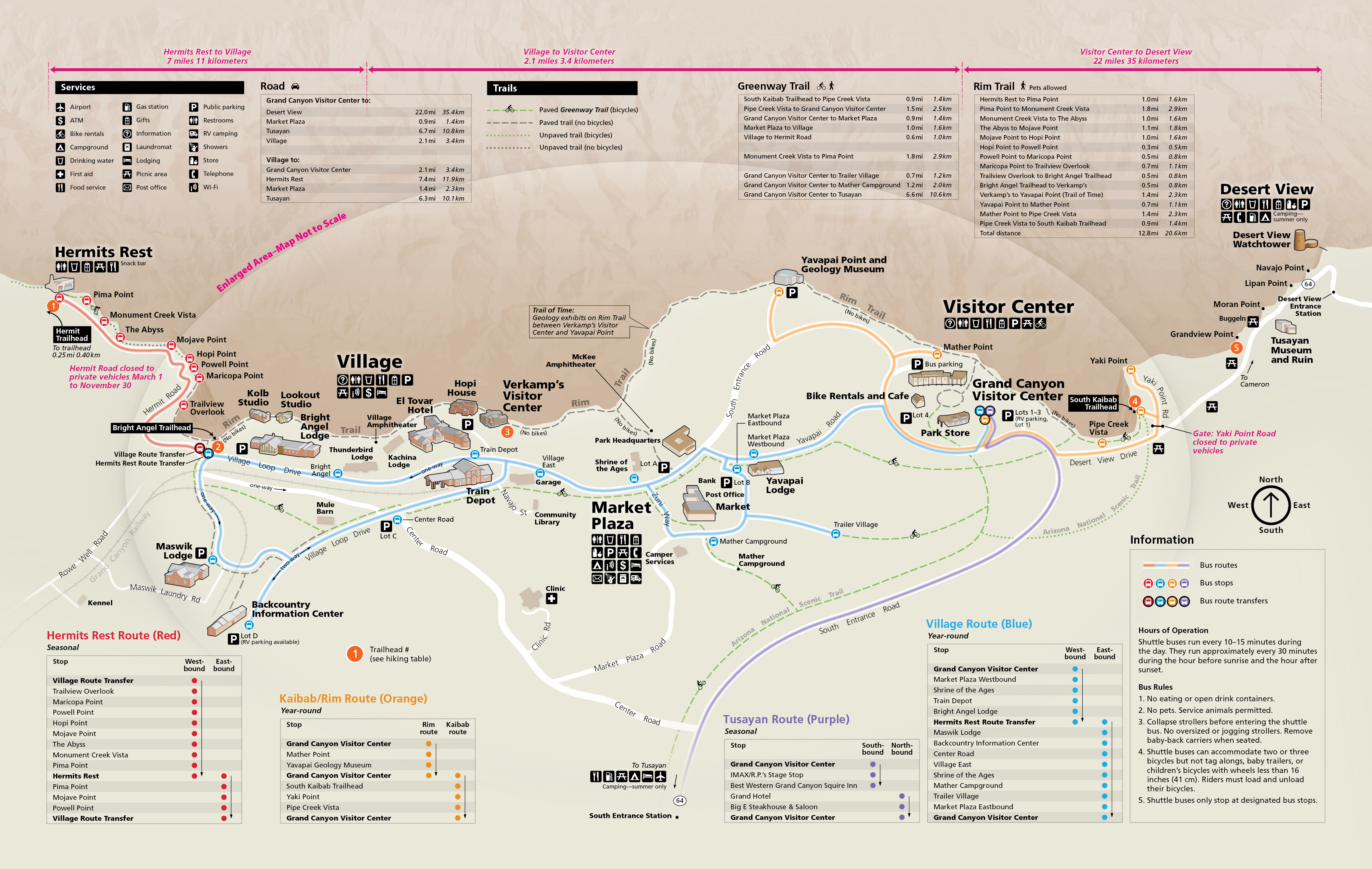 - There are four free shuttle routes at the South Rim.